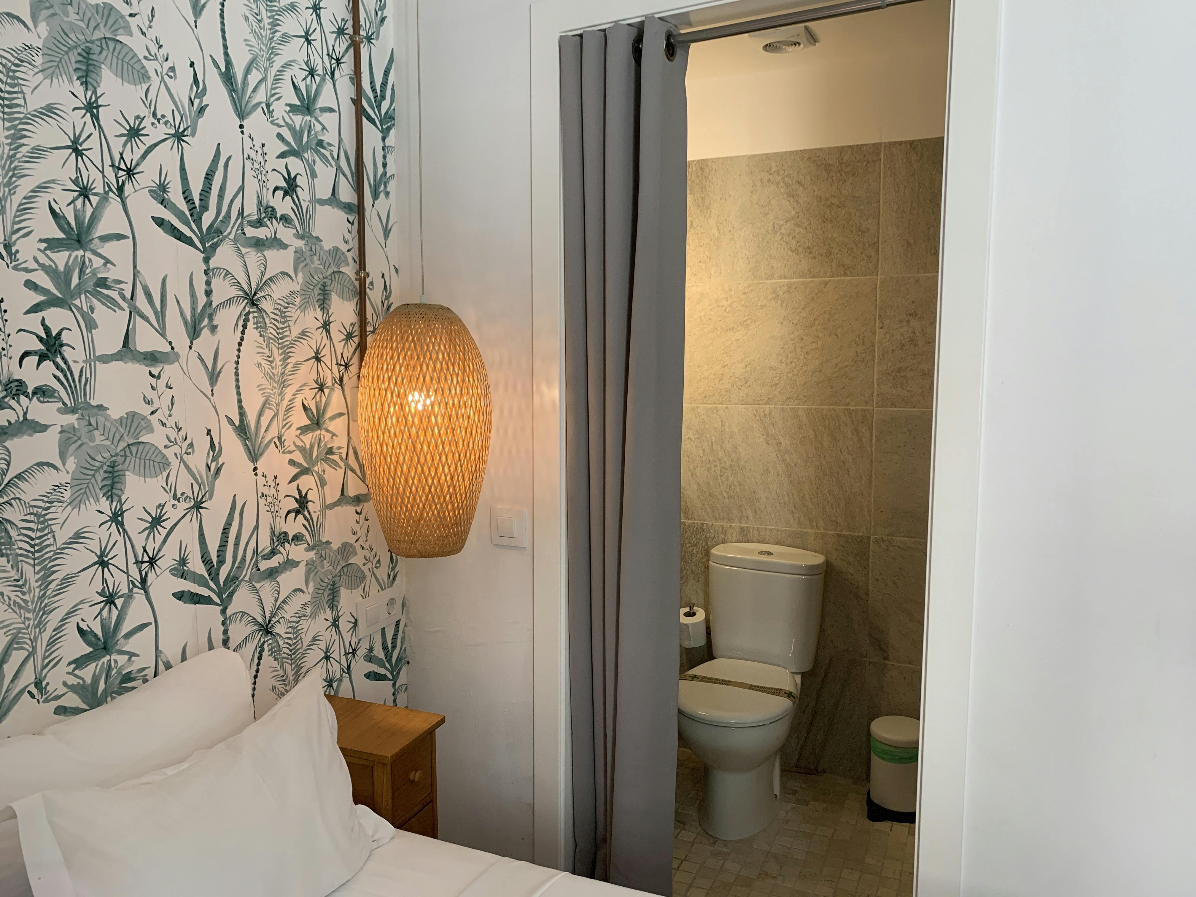 Small and cozy room (12 m square, one double bed). With private bathroom. Street view.